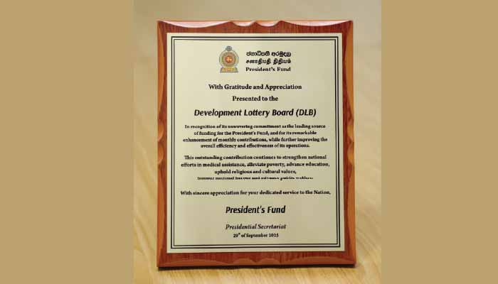 The Development Lotteries Board (DLB), the sole financial contributor to the President's Fund, was commended and highly praised at the Presidential Secretariat on September 29, 2025, for its exceptional financial contribution during the year